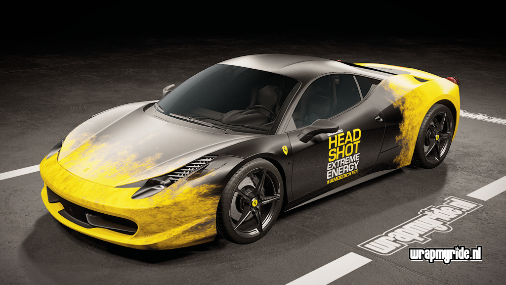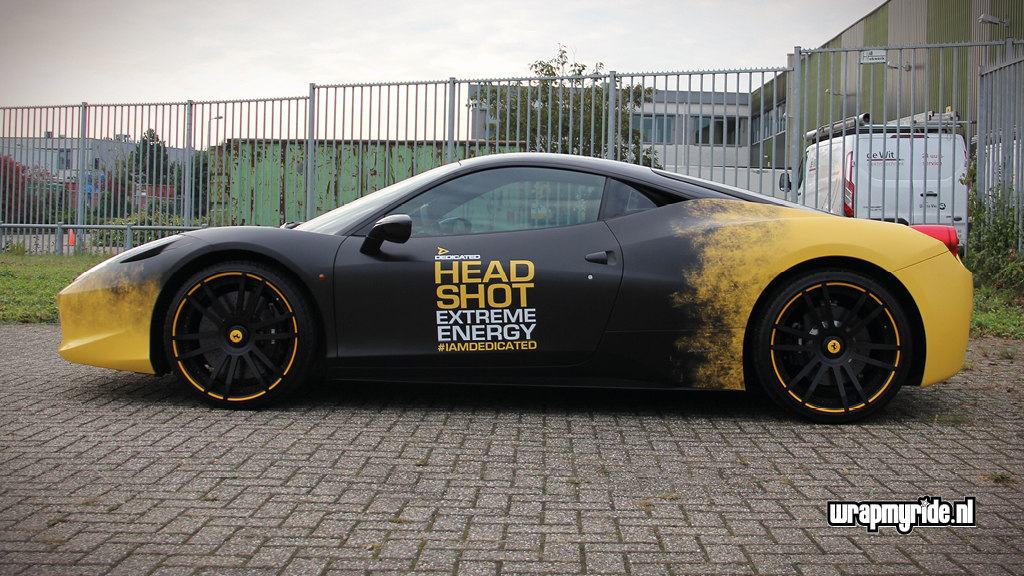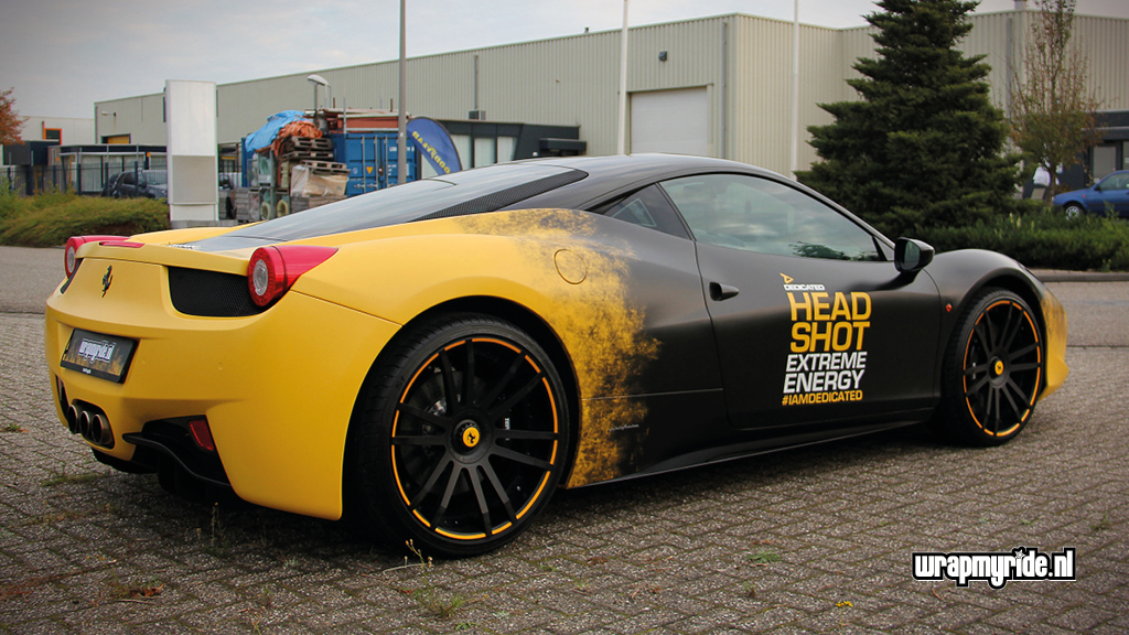 Prijswinnend ontwerp voor de Ferrari Italia 458. Full colourwrap uitgevoerd met een satin laminaat.